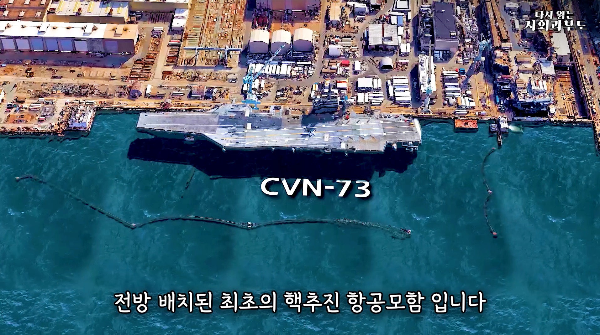 자, 그럼 세계 최강의 해군력을 자랑하는 미국의 항공모함을 살펴볼까요? 미국 해군 항공모함은 'CVN' 이라는 선체 분류 기호를 사용합니다. 여기서 'N'은 Nuclear-powered, 즉 원자력 추진이라는 의미입니다.