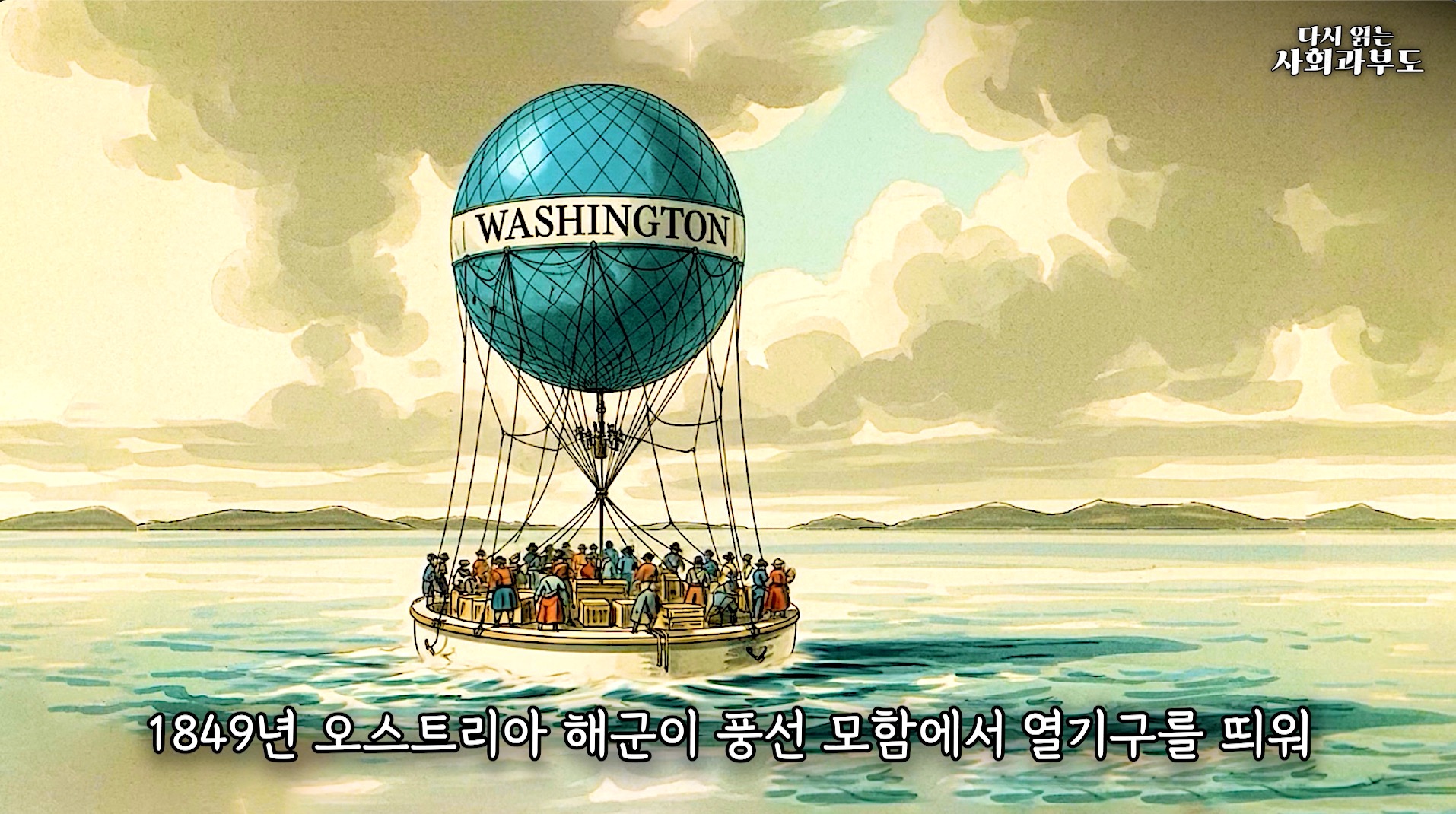 항공모함의 시초는 풍선 모함입니다. 1849년 오스트리아 해군이 풍선 모함에서 열기구를 띄워 폭탄 투하를 시도했지만 실패했죠. 남북 전쟁에서는 가스 풍선이 사용되었고, 가스 발생 장치를 갖춘 배가 건조되었습니다.