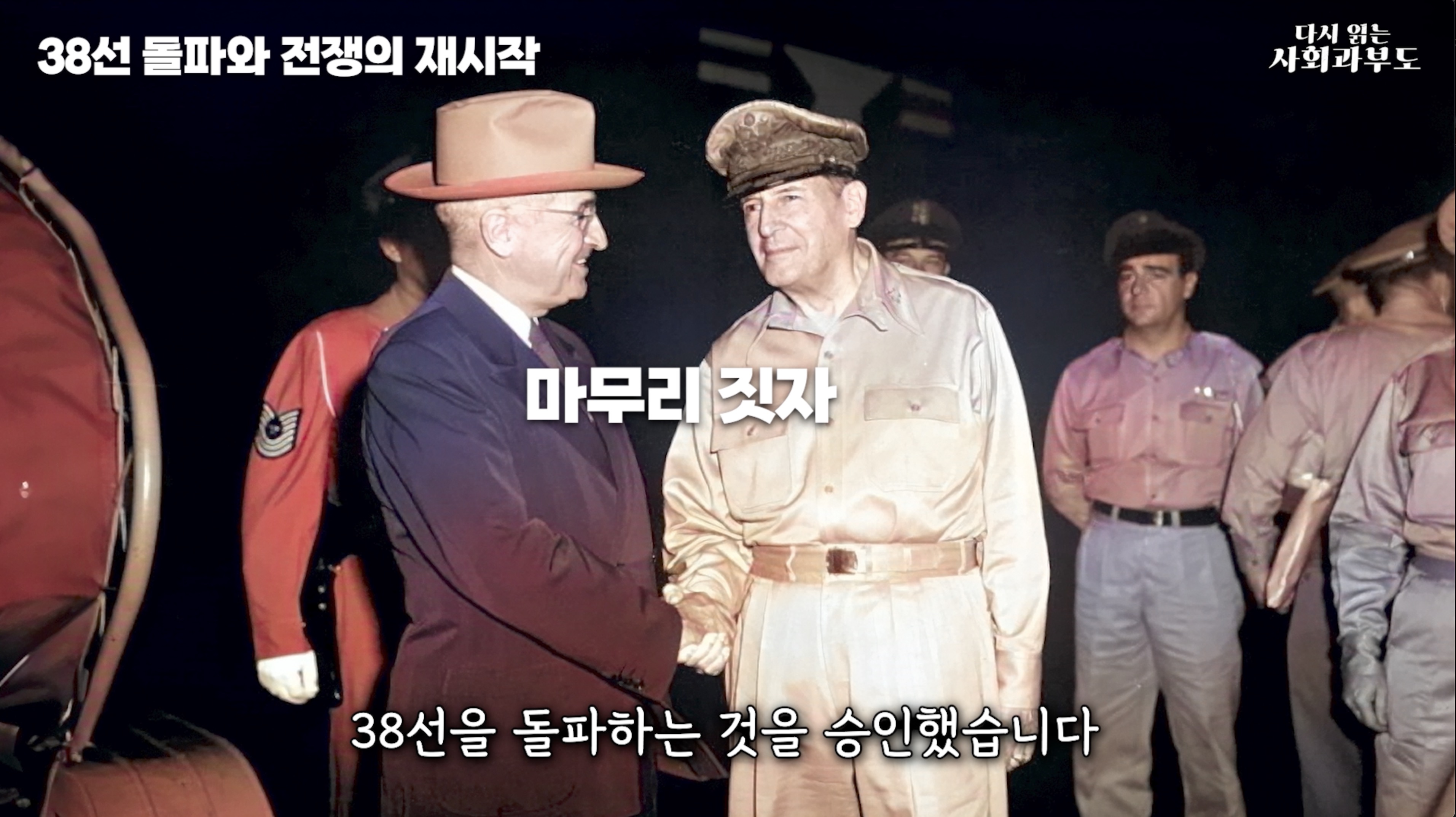 논의 끝에 10월 7일, 미군 제1기병사단이 맥아더의 명령에 따라 38선을 넘어 진격을 시작했습니다. 이 날은 중화인민공화국 건국 1주년이기도 했는데, 중화인민공화국 총리인 주은래는 '중국 인민은 외국의 침략을 용인할 생각은 없고, 제국주의자들이 인접한 영토에 침입할 경우 이를 방치할 생각은 없다'는 명백한 경고 성명을 발표했습니다. 하지만 워싱턴은 이 성명을 단순한 위협으로 무시했습니다. 마오쩌둥은 결국 중화인민공화국의 전쟁 개입이 불가피하다고 생각했습니다. 그리고 예상대로, 한국전쟁은 북쪽에서 다시 시작되며, 중화인민공화국은 전쟁에 참가하기로 결정합니다.