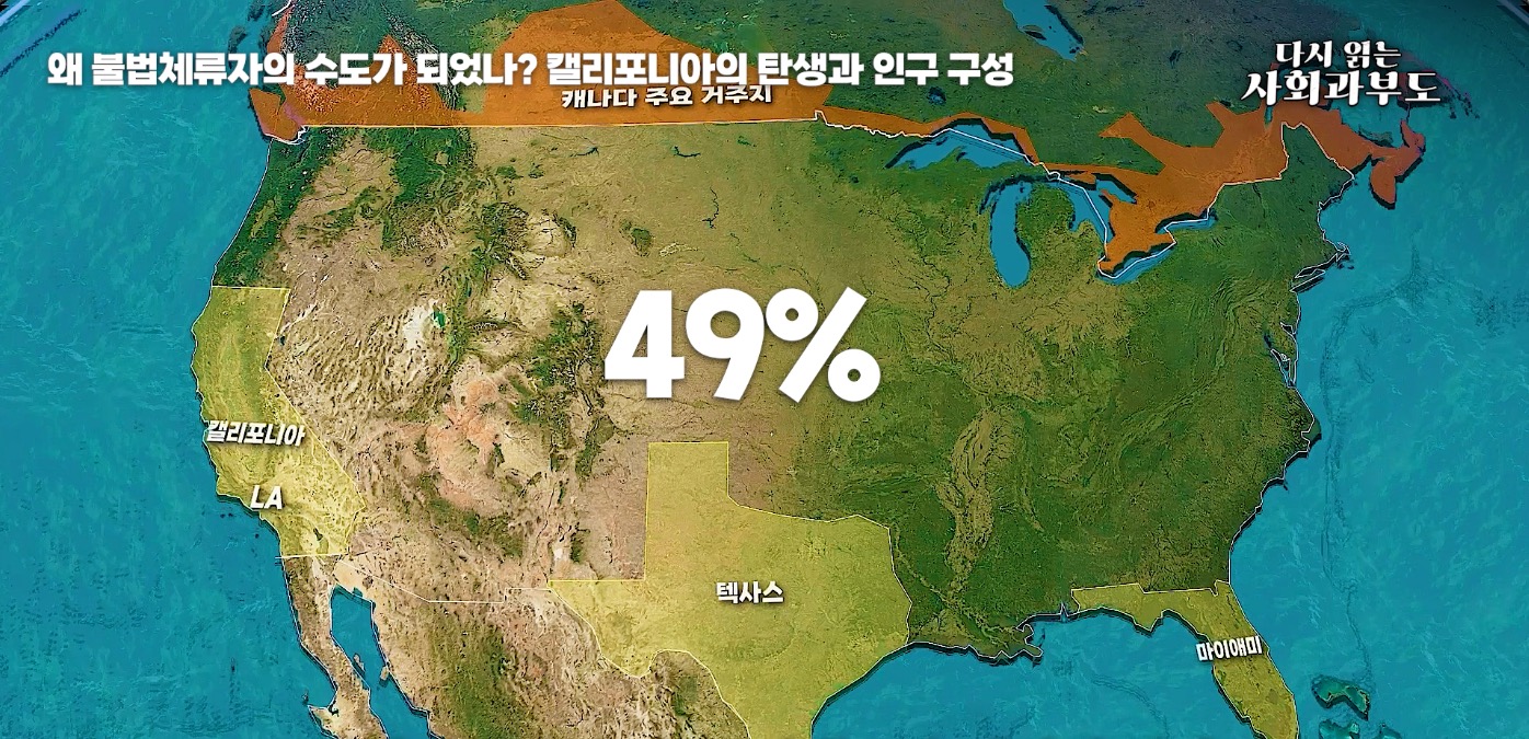 왜 이렇게 캘리포니아에 불법체류자가 몰려 있을까요? 캘리포니아가 미국의 31번째 주가 된 것은 1850년입니다. 그런데 그 땅은 원래 누구의 땅이었을까요? 바로 멕시코와의 전쟁에서 미국이 빼앗아온 땅입니다. 1848년에는 이곳에서 금이 발견되면서 전 세계 사람들이 몰려드는 '골드러시'가 시작됐고, 인구가 폭발적으로 늘어났죠.