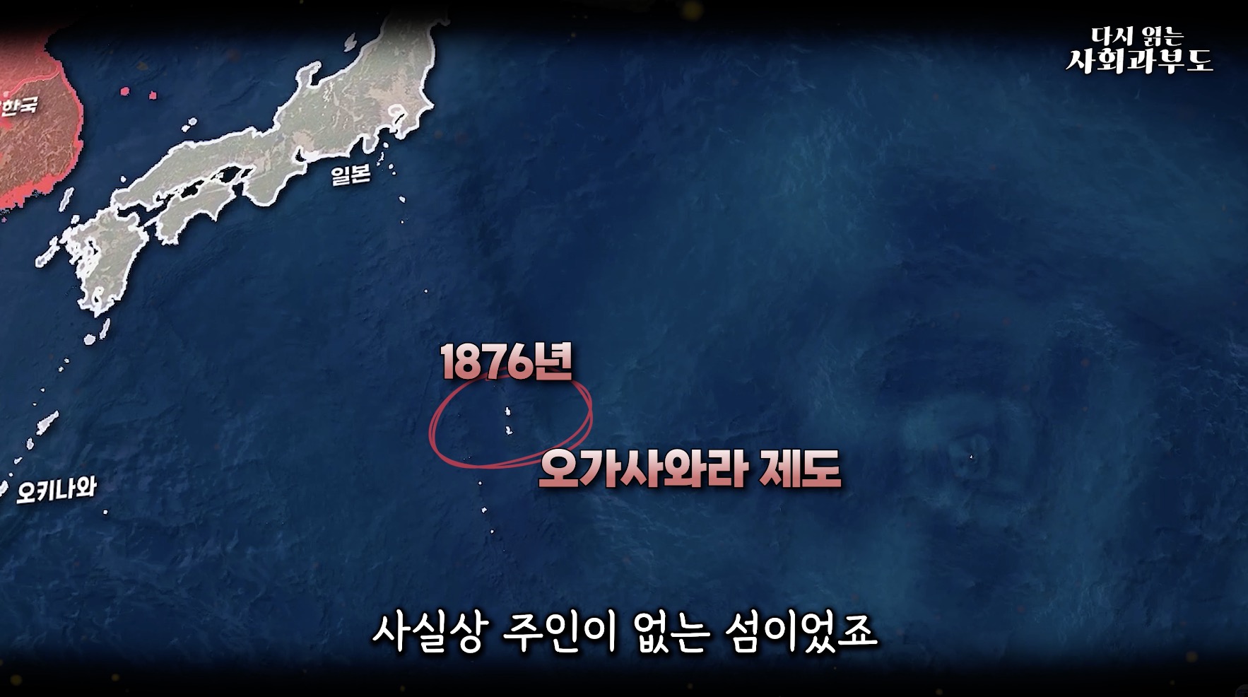홋카이도 편입 직후인 1876년입니다. 이 태평양 한가운데 있는 오가사와라 제도는 1830년대부터 여러 나라 사람들이 살고 있던, 사실상 주인이 없는 섬이었어요. 그런데 일본이 1875년에 영국이랑 협상을 해서 영유권을 인정받았고, 1876년에 정식으로 자기네 땅으로 편입시킨 거죠. 이것도 메이지 정부의 영토 확장 정책 중 하나였습니다.