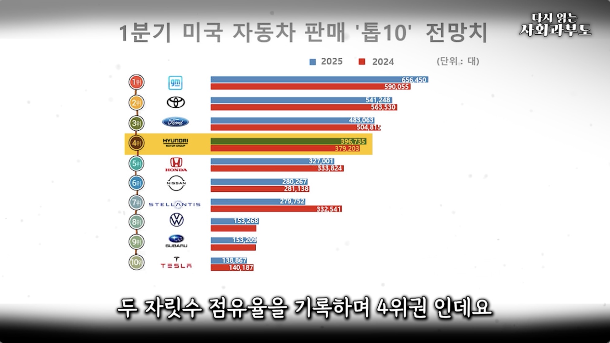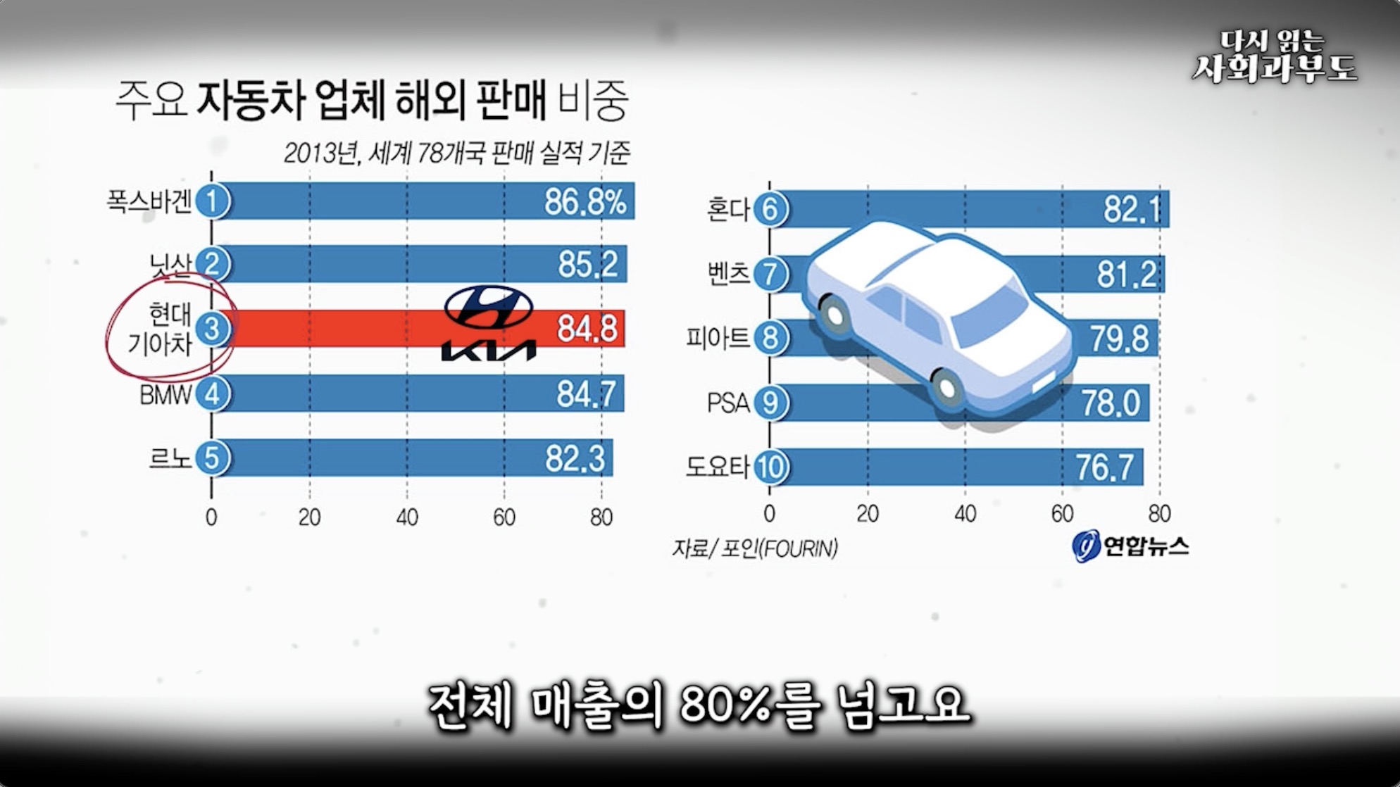 여러분! 현대자동차와 기아는 한국 경제의 핵심입니다. 해외 시장 매출이 전체 매출의 80%를 넘고 있습니다. 이 비중이 놀라운 것은 SK 하이닉스가 90%, 삼성전자가 80%, 조선업이 90%이며 LG화학, 한화 솔루션도 막대한 외화를 한국에 벌어오고 있는 한국 경제를 지탱하는 기업들이라는 것을 명심해야 합니다.