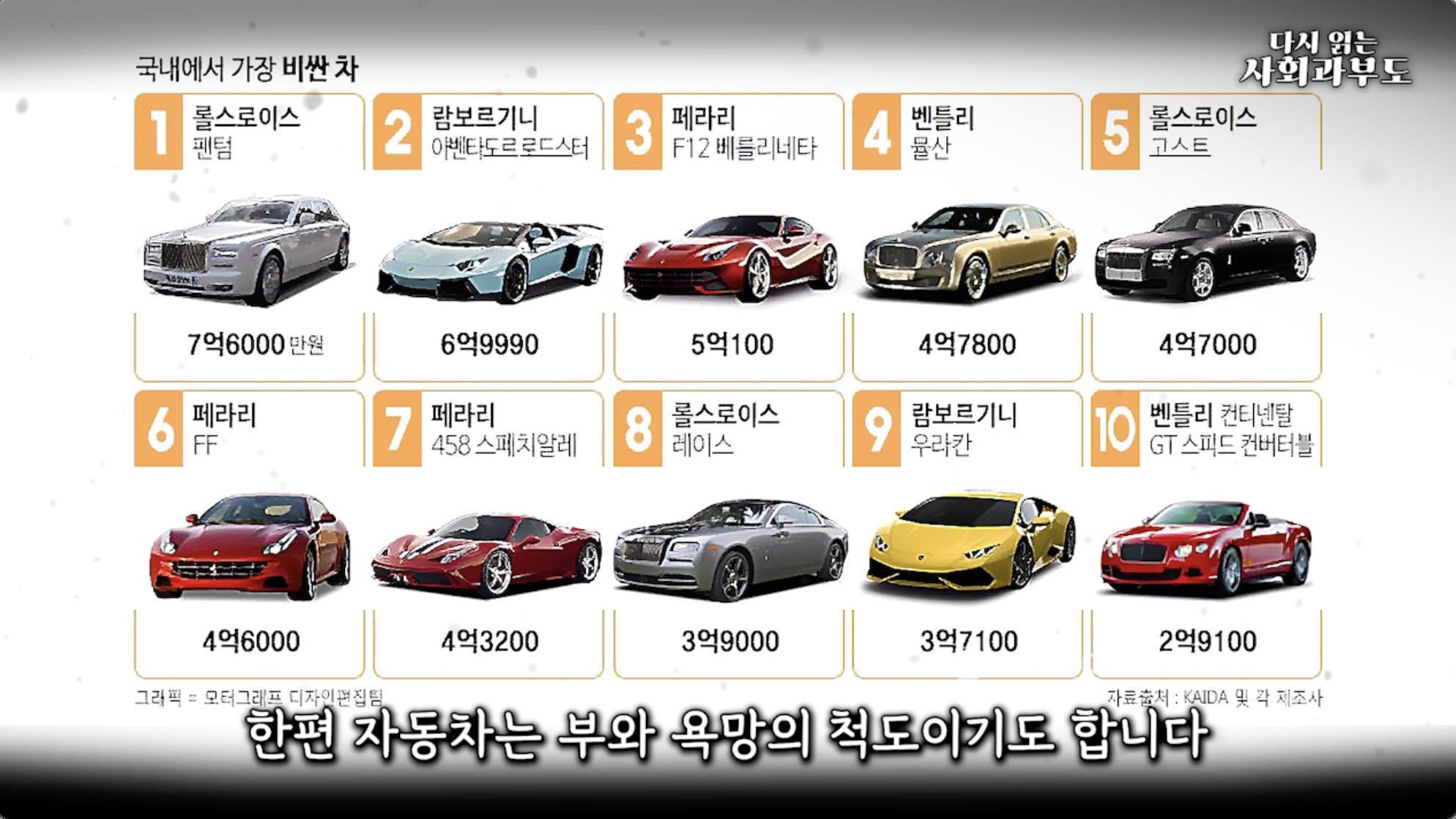 한편, 자동차는 부와 욕망의 척도이기도 합니다. 명품의 개념이라고도 볼 수 있는데요. 화려한 익스테리어를 가진 고급차는 부자들의 부를 시각적으로 보여주고 많은 사람들의 소유 욕구를 끊임없이 자극하며 더 비싼 차를 갖고 싶게 만듭니다. '카푸어'가 되더라도 자동차를 소유하고 싶어하는 이유도 바로 여기에 있습니다.