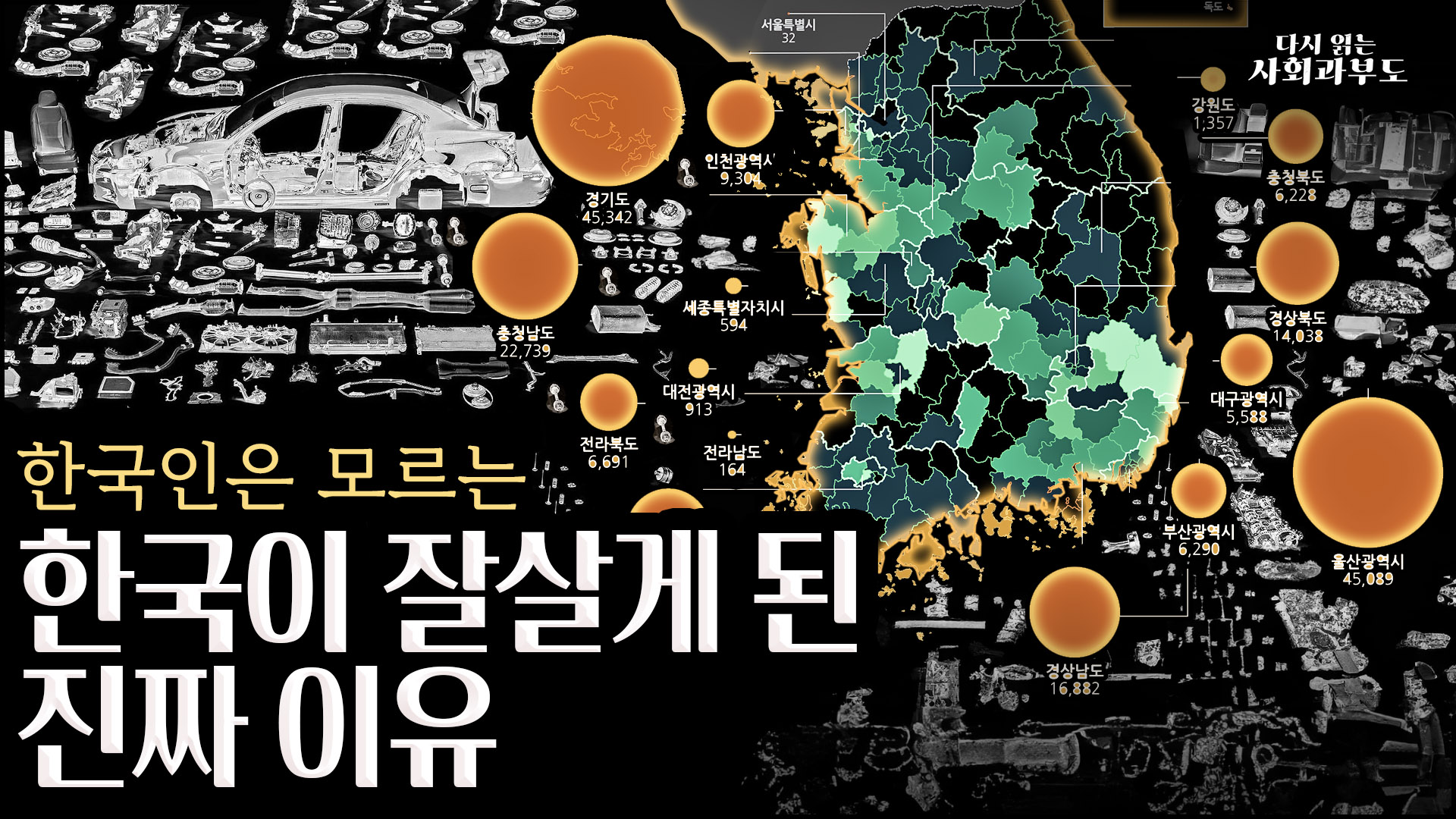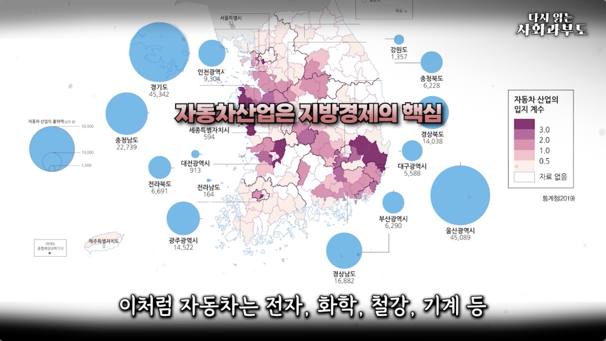 그렇다면 자동차는 인간의 삶을 어떻게 바꾸었을까요? 자동차의 등장은 말 그대로 사회과부도의 지형도를 바꾸었습니다. 산업 발전의 견인차인 자동차는 그 자체로 거대한 종합 산업입니다. 자동차 한 대를 만들기 위해 강철, 알루미늄 같은 금속부터 타이어, 플라스틱, 배터리, 반도체 등 수만 가지 부품이 필요하기 때문이죠. 이 때문에 2차, 3차 협력업체들이 자동차 산업을 중심으로 움직이게 됩니다. 이처럼 자동차는 전자, 화학, 철강, 기계 등 다양한 산업을 동시에 일으켜 국가 경제의 근간이 되는 것입니다.