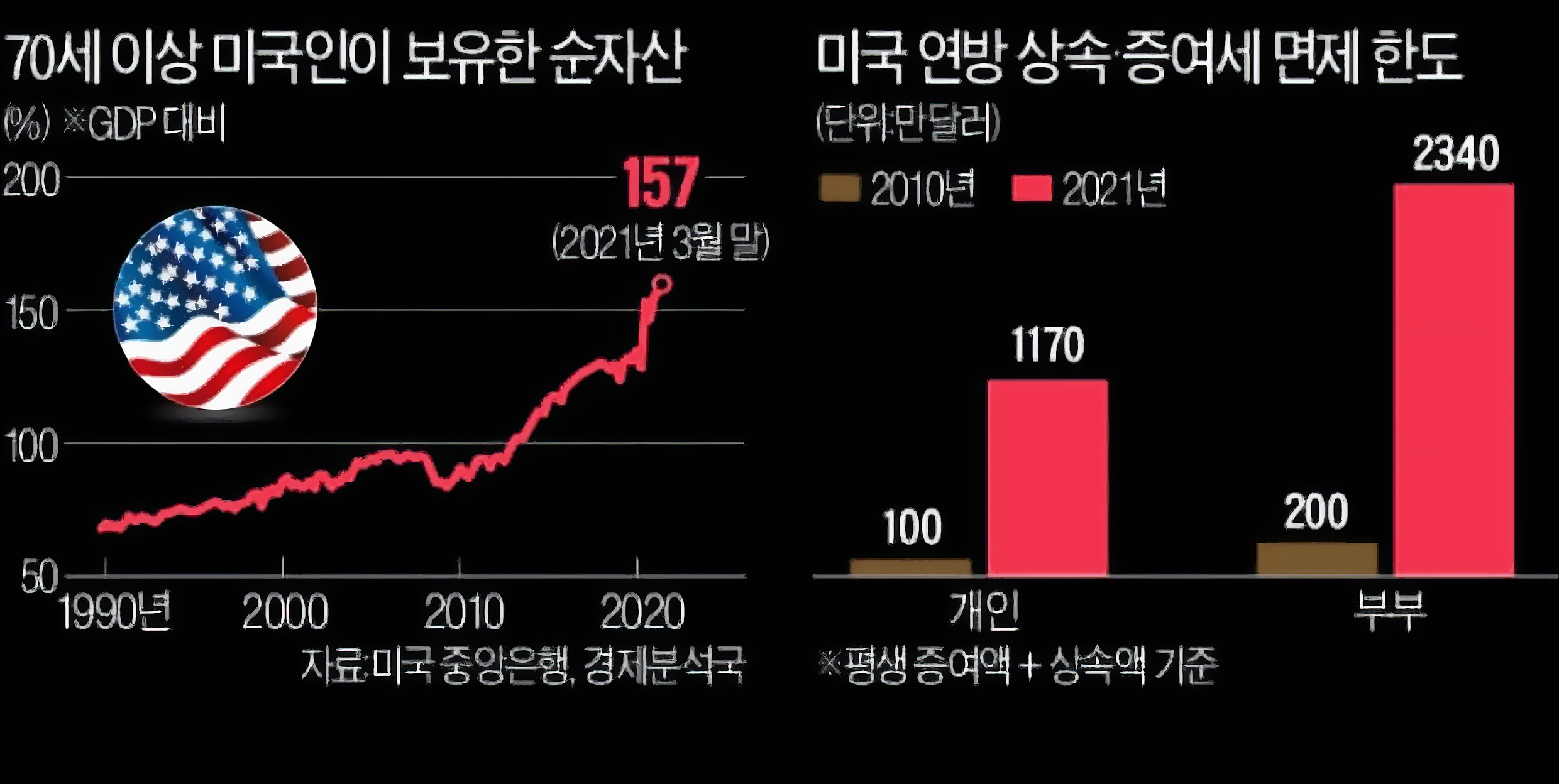 미국은 한국과 같은 '유산세' 방식을 고수하지만, 그 성격은 매우 다릅니다. 미국의 상속세는 전통적으로 **'전쟁세'**였습니다. 1862년 남북전쟁, 1898년 미-스페인 전쟁 등 큰 전쟁이 터질 때마다 비용 충당을 위해 한시적으로 도입되었죠. 그러다 1916년 제1차 세계대전을 거치며 영구적인 세금으로 자리 잡았죠. 미국은 "기회의 평등"을 중시하는 청교도적 전통 때문에 부의 대물림에 엄격했습니다. 하지만 2000년대 들어 '이중과세' 논란이 거세지며 공제 한도를 파격적으로 높였습니다. 아까 말씀드렸죠? 스웨덴도 2005년, 한국은 그동안 한걸음도 나아가지 못했던 시간입니다. 현재 미국은 약 1,300만 달러(약 190억 원)까지는 세금을 한 푼도 내지 않습니다. 사실상 상위 0.1%만을 위한 세금이 된 셈입니다. 미국은 40%라는 높은 세율을 유지하지만, 실제 부자들은 이를 다 내지 않습니다. 그들은 **'신탁(Trust)'**과 **'공익법인'**이라는 우회로를 합법적으로 활용하죠. 엔비디아의 젠슨 황은 자녀들에게 주식을 물려줄 때 '증여자 보존 연금 신탁(GRATs)'을 활용했습니다. 주식을 신탁에 넣고 발생한 이익만 자녀에게 넘기는 방식으로, 수조 원의 상속세를 합법적으로 절감했죠. 월마트의 오드리 월튼 역시 이 방식으로 수억 달러의 세금을 피했습니다. 빌 게이츠나 워런 버핏이 재산의 90%를 기부하는 이유는 순수한 자선심도 있겠지만, 재단에 출연한 주식은 상속세가 면제되면서도 가문의 영향력을 유지할 수 있는 수단이 되기 때문입니다. 미국에서 상속세는 '징벌'이 아니라 '자발적 기부 유도 장치'에 가깝습니다.