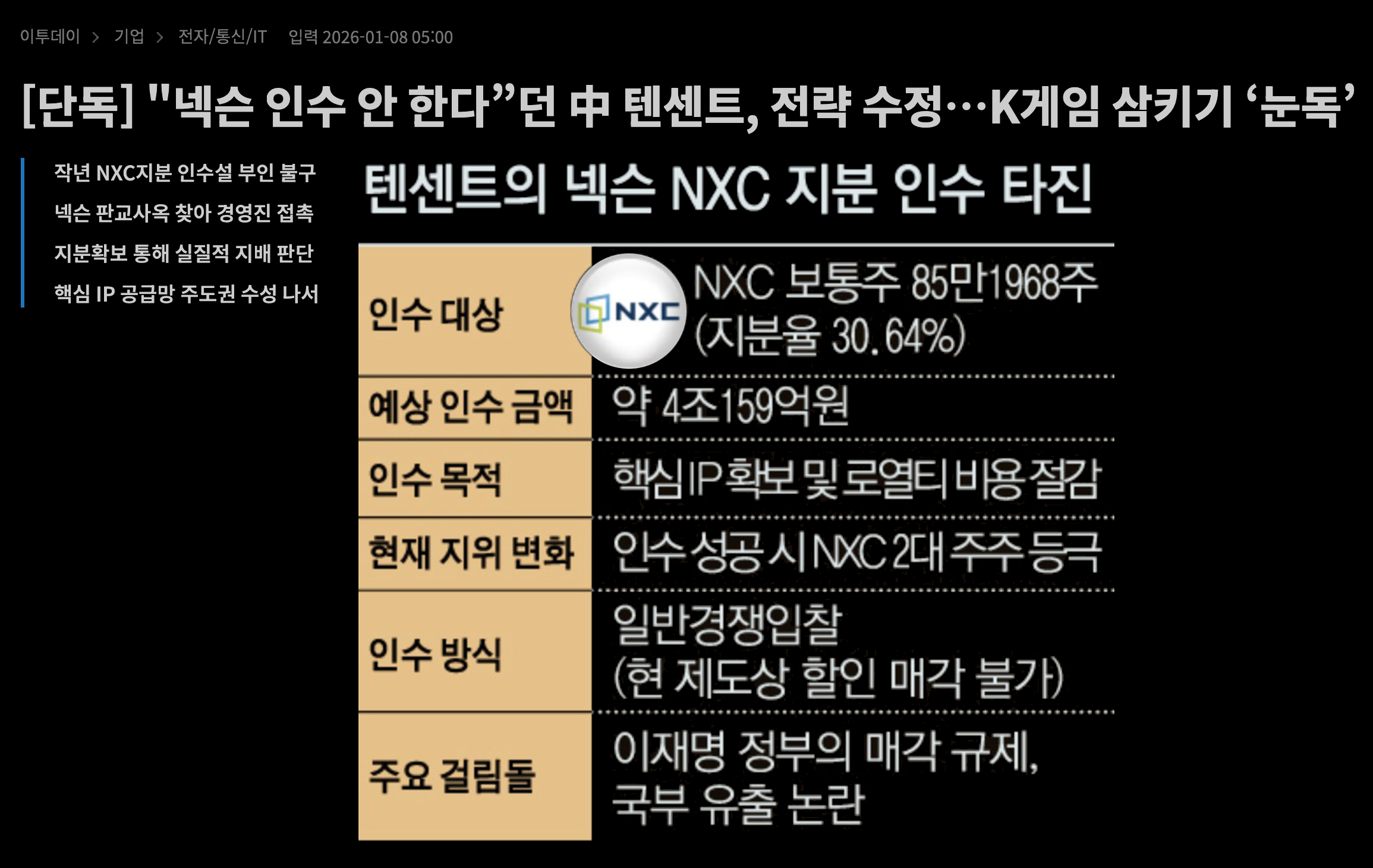 유럽 기업들이 중국 자본에 넘어가는 동안, 한국 기업들은 '내부적 붕괴'와 '코리아 디스카운트'라는 독특한 위기에 직면합니다. 삼성과 넥슨의 고군분투 삼성가는 이건희 회장 사후 약 12조 원의 상속세를 내기 위해 일가족이 수조 원의 대출을 받고 계열사 주식을 계속해서 매각하고 있습니다. 만약 독일이었다면 이미 상속세 문제는 해결이 되었었겠죠. 일본이었다고 해도 계속 승계했기 때문에 문제가 없죠. 더 잘 키울 생각만 하면되는거죠. 언제까지 한국 정서는 기업가를 악인으로 생각할겁니까? 이는 단순한 부자의 문제가 아닙니다. 대주주의 지분이 낮아지면 외부 투기 자본의 공격에 취약해지고, 결국 기업의 장기적인 투자가 위축됩니다. 요즘 코스피 많이 하시죠? 좋은 기업 튼튼한 기업이 많아야 계속 오르겠죠? 넥슨의 경우, 창업주 고(故) 김정주 회장 사후 유족들이 상속세 대신 지주회사 지분을 국가에 납부(물납)하면서, 대한민국 정부가 넥슨의 2대 주주가 되는 기이한 상황이 벌어지기도 했습니다.