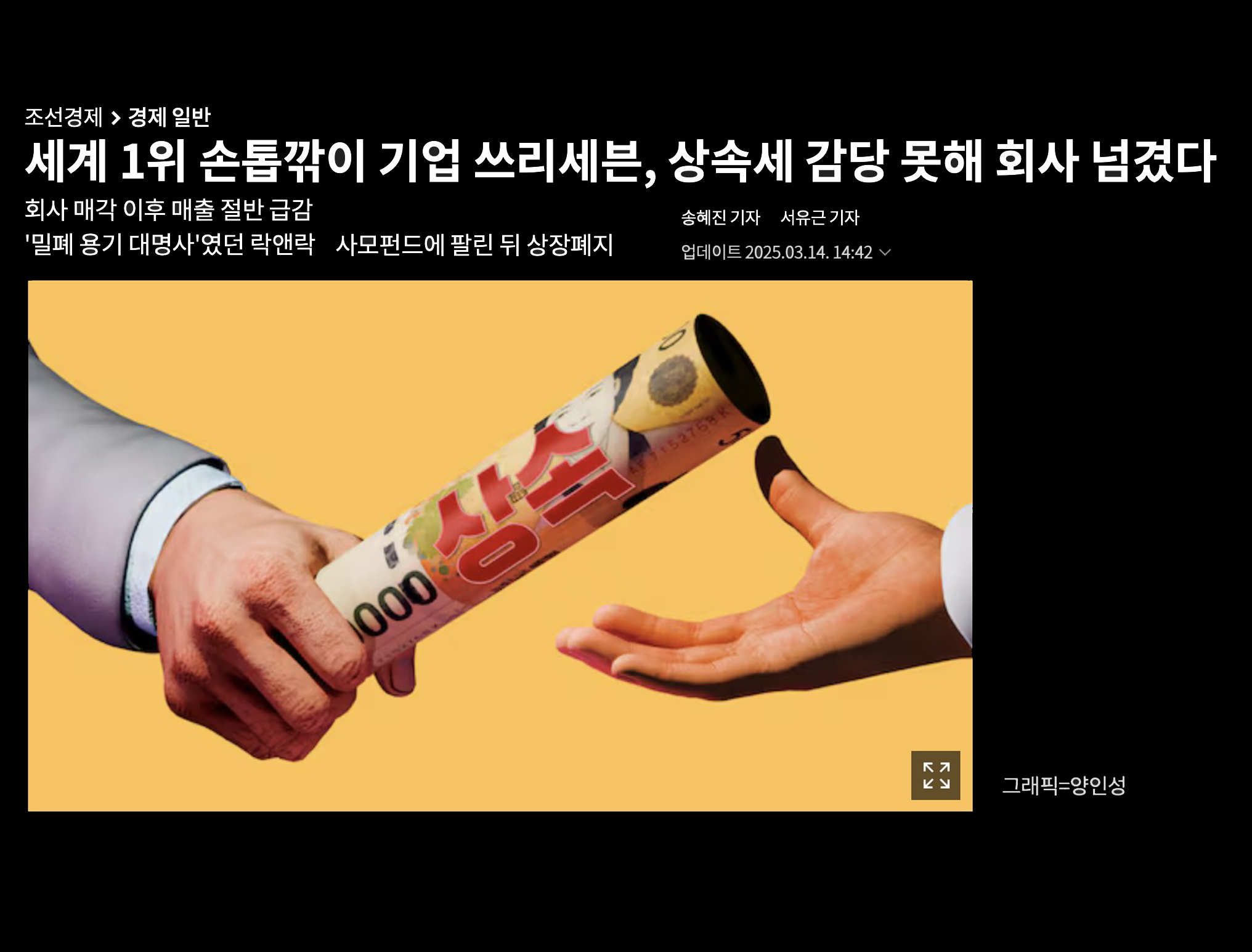 유럽의 이야기가 먼 나라 이야기 같으신가요? 우리에게도 똑같은 비극이 이미 있습니다. 세계 1위 손톱깎이 '쓰리세븐’은 2008년 창업주 사후, 자녀들이 150억 원의 상속세를 낼 돈이 없어 지분을 전량 매각했습니다. 결과는 참담했습니다. 전문경영인이 온 뒤 매출은 반토막 났고,