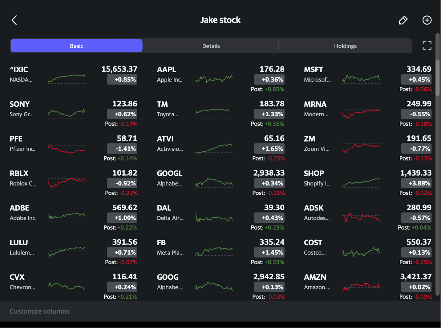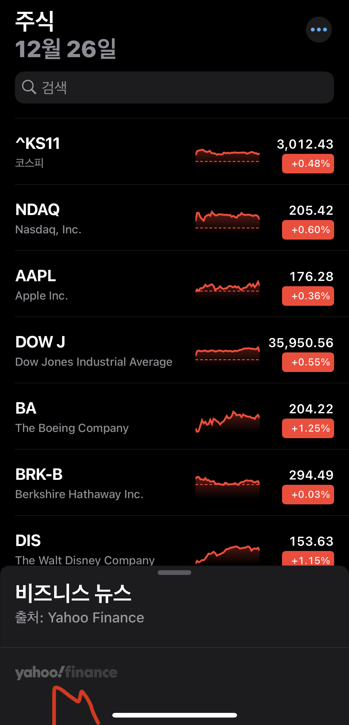 아이폰과 아이패드, 애플워치 에는 '주식 stocks' 라는 기본앱이 있습니다. 이서비스는 야후 파이낸스 데이터로 가능한데, 야후 파이낸스 앱을 깔면 더 자세한 정보를 제공받을 수 있습니다.
