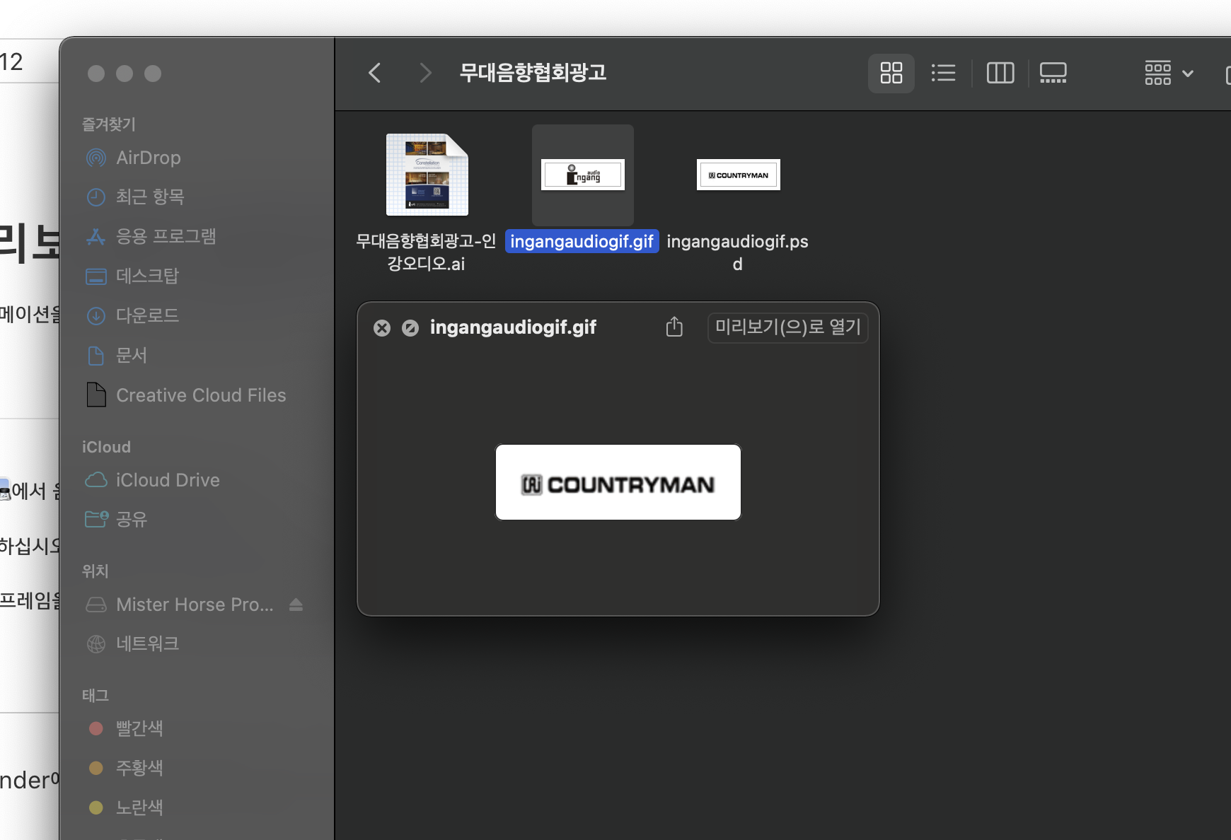 맥북 파인더에서 그냥 GIF클 클릭하면 미리보기는 보이는데