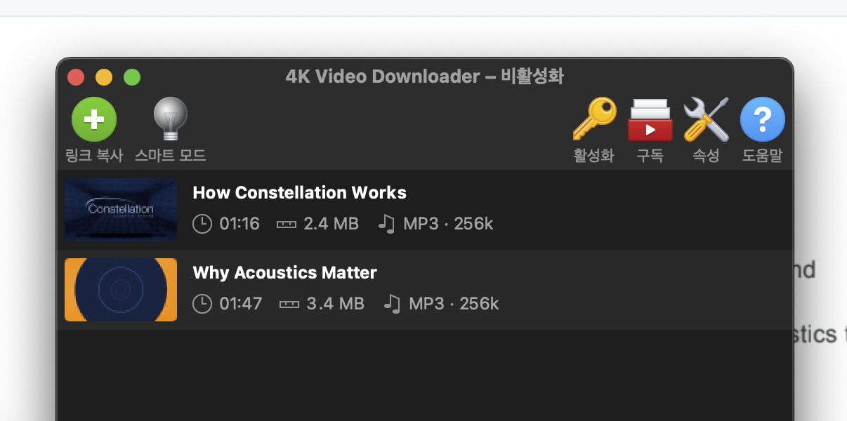 이영상을 먼저 mp3로 변환하려면 4k video downloader 를 설치해서 링크를 추가하면 받아지는데