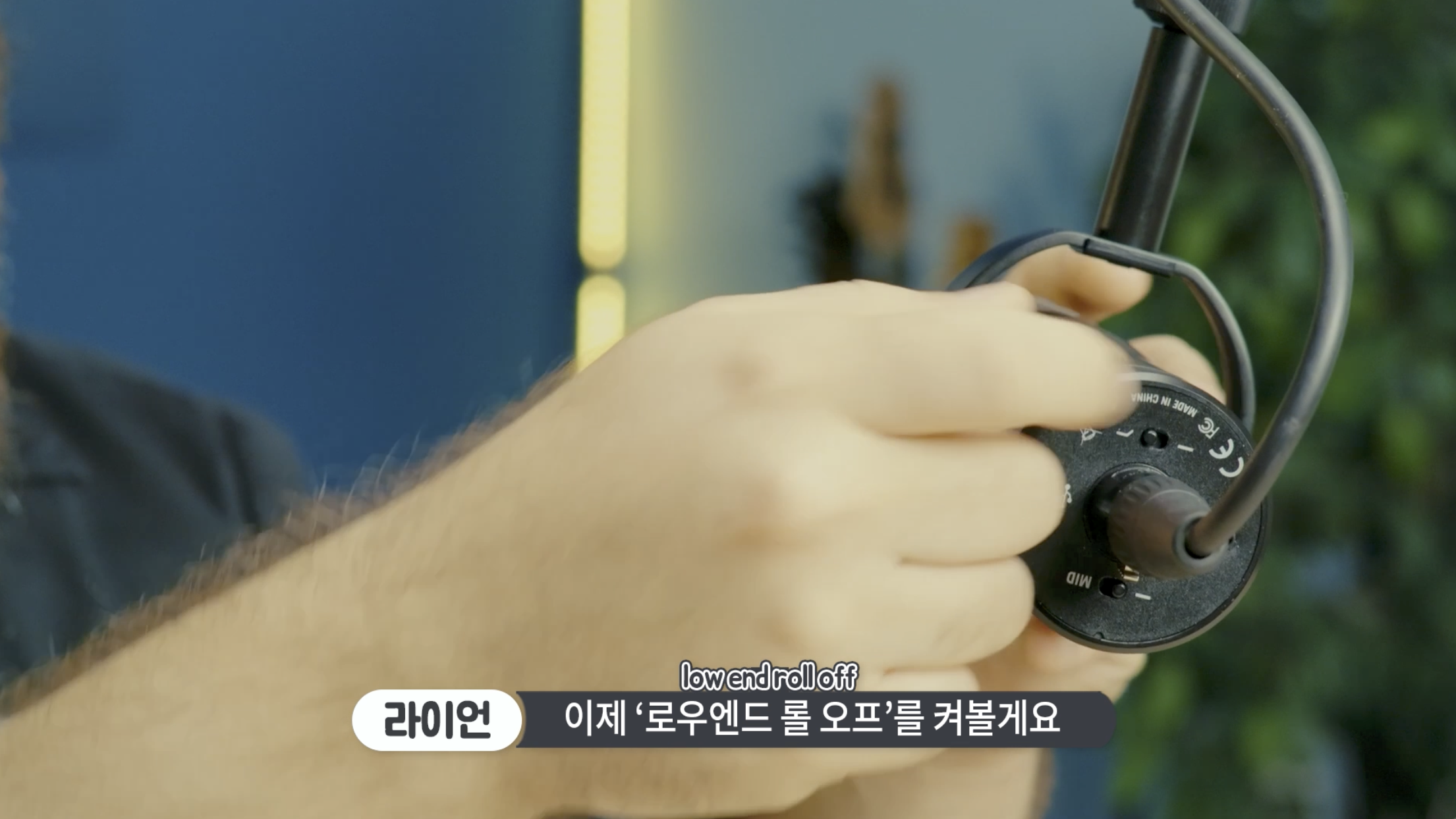 지금은 마이크를 ‘플랫’한 상태고요. 이제 ‘로우엔드 롤 오프’를 켜볼게요. 현재 로우엔드 롤오프가 활성화된 상태에요 흉성과 같은 흐린상태를 선명하게 만들고 외부의 냉장고소리나 전류소리 같은 잡음을 줄여줘요. 지금은 다시 마이크의 ‘플랫’한 소리에요 이제 ‘미드 범프’ 스위치를 켜볼게요.