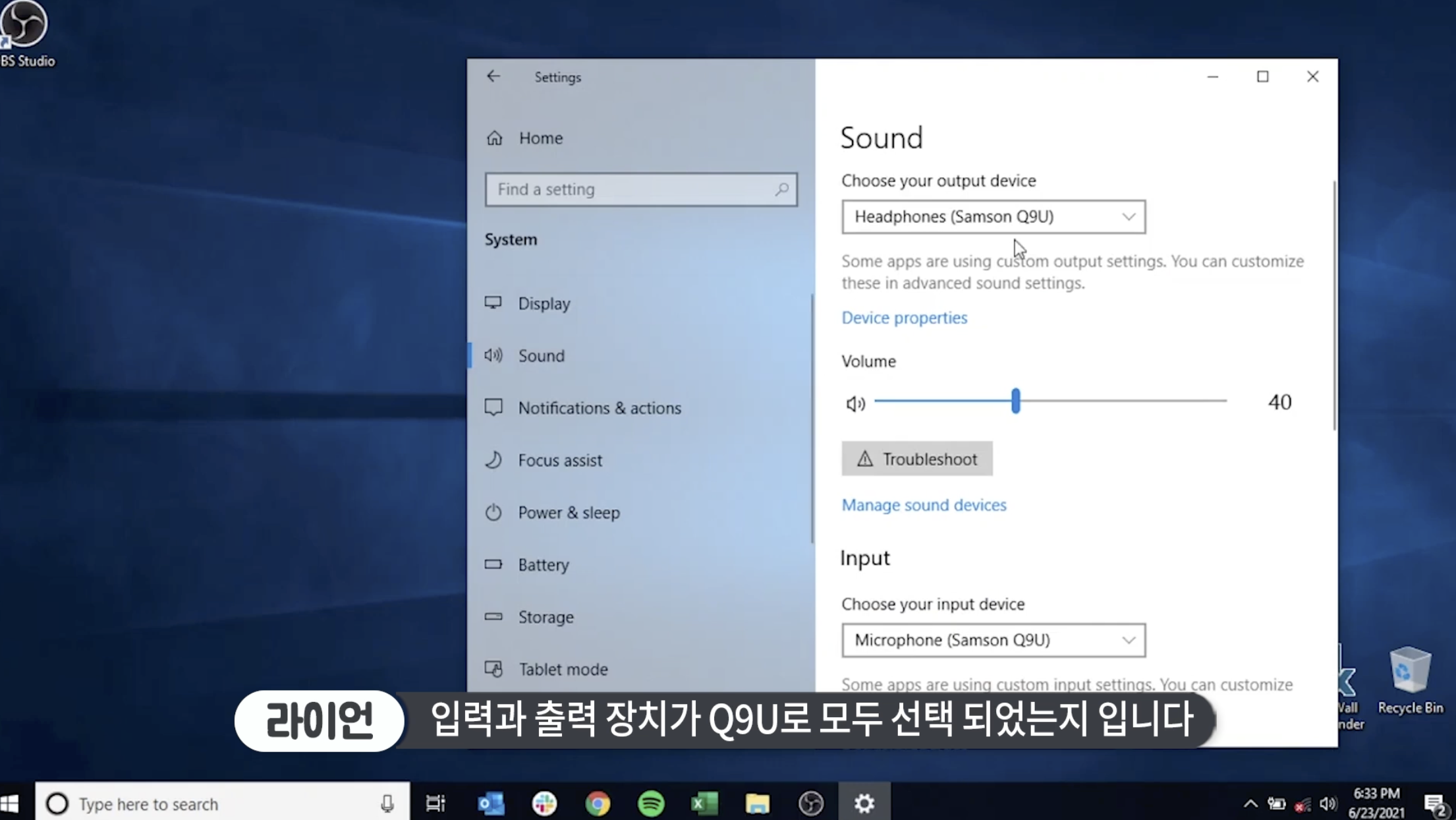 ‘시스템 환경설정’을 눌러주고 ‘사운드’를 눌러주세요. 입력 메뉴에서 Q9U를 선택해 줍니다. 마이크에 있는 헤드폰 출력을 사용하기 위해 Q9U가 출력 장치로 선택해 주시고요. 읽어주셔서 감사해요.당신이 무엇을 크리에이트할지 기대할게요.