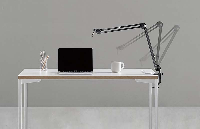 내부 스프링과 관절형태의 암 디자인은 조용하고 스무스하게 움직이고, 이는 녹음, 스트리밍 또는 라이브 방송에 이상적입니다. 사용하지 않을 시는 한쪽으로 밀어넣을 수 있어 공간활용이 매우 뛰어납니다.