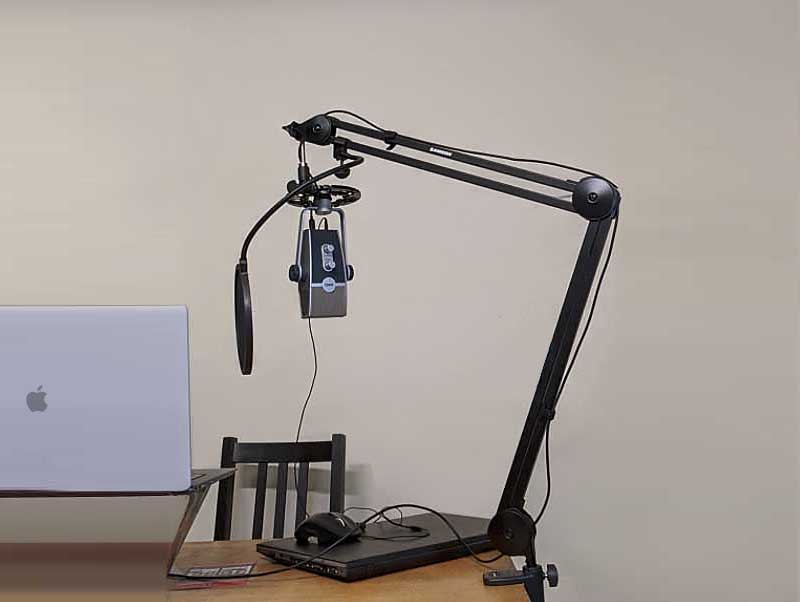 부드럽고 세밀하게 조절 가능한 삼손 마이크 붐은 최적의 마이크 배치를 위해 수평 및 수직으로 조절 가능.
