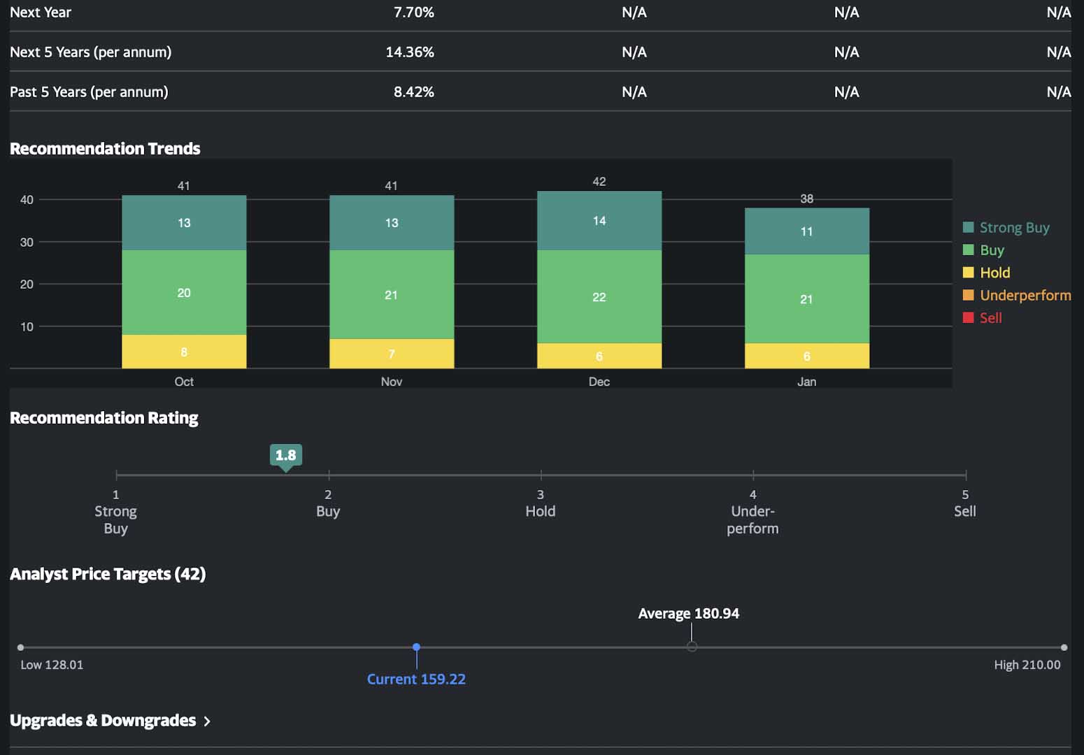 애플의 경우 애널리스트들은 180달러를 적정선으로 보고있습니다. 현재 159불이니깐 21불의 갭이 발생합니다. 오늘 어닝서프라이즈 실적발표도 있었으니 참고 인내가 필요한 시기입니다.