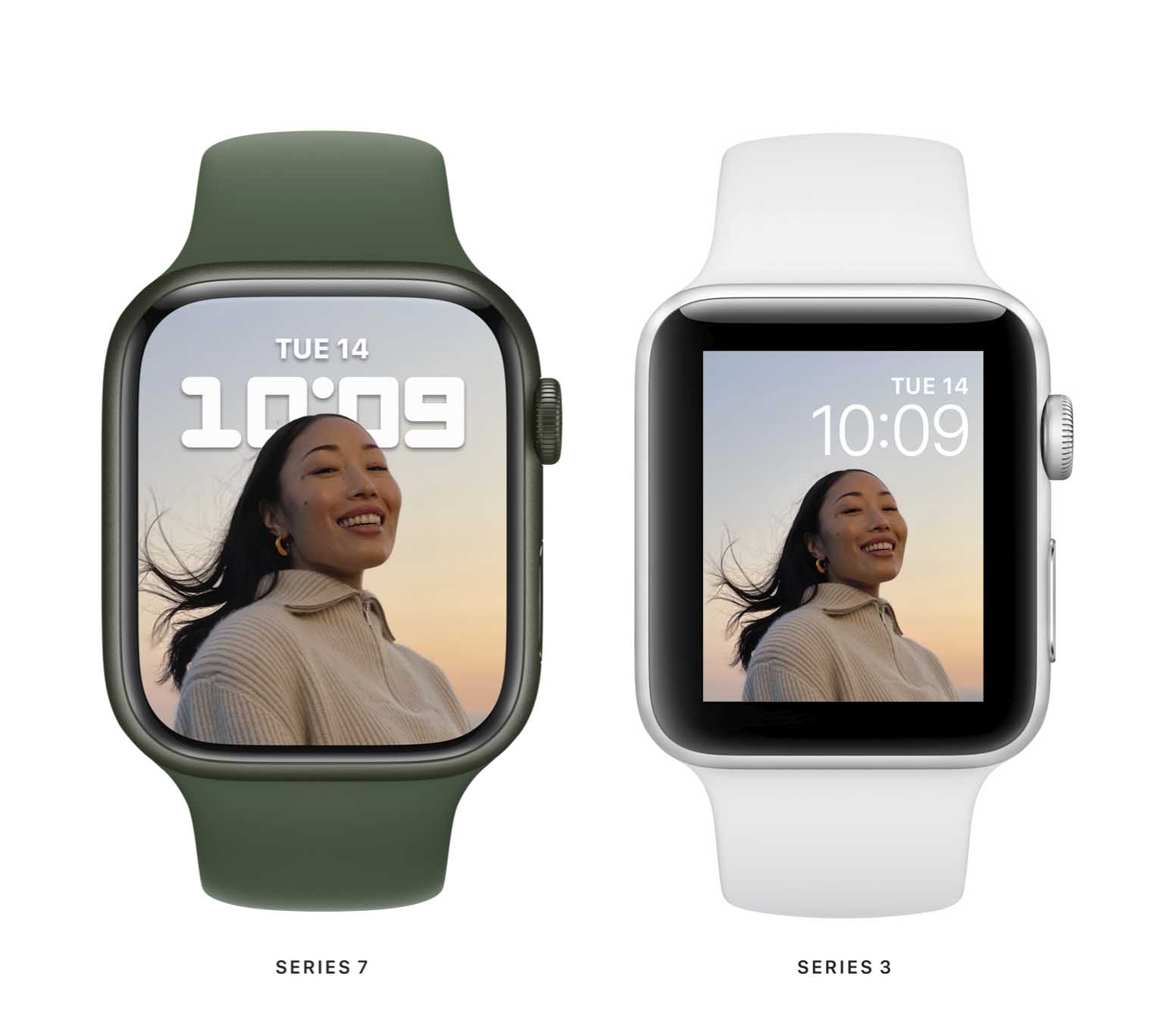 이번 애플워치7은 애플워치3에 비해 50%나 회면이 넓어졌습니다. 항상 켜져있는 월웨이즈온 레티나 디스플레이고, 산소 포화도 측정이 가능합니다. ECG 앱을 지원합니다.