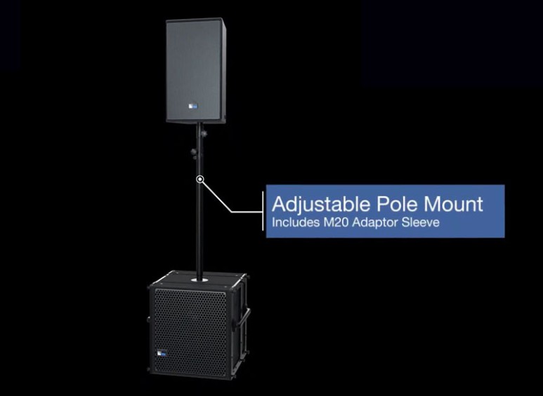 11개의 M8 포인트와 35mm 폴 마운트 소켓으로 다양한 인스톨이 가능합니다. 선택할 수 있는 마운팅 악세사리로는 U-브라켓 요크, 픽업 플레이트, 여러대의 스피커를 함께 클러스터 하기 위한 브라켓이 있습니다.
