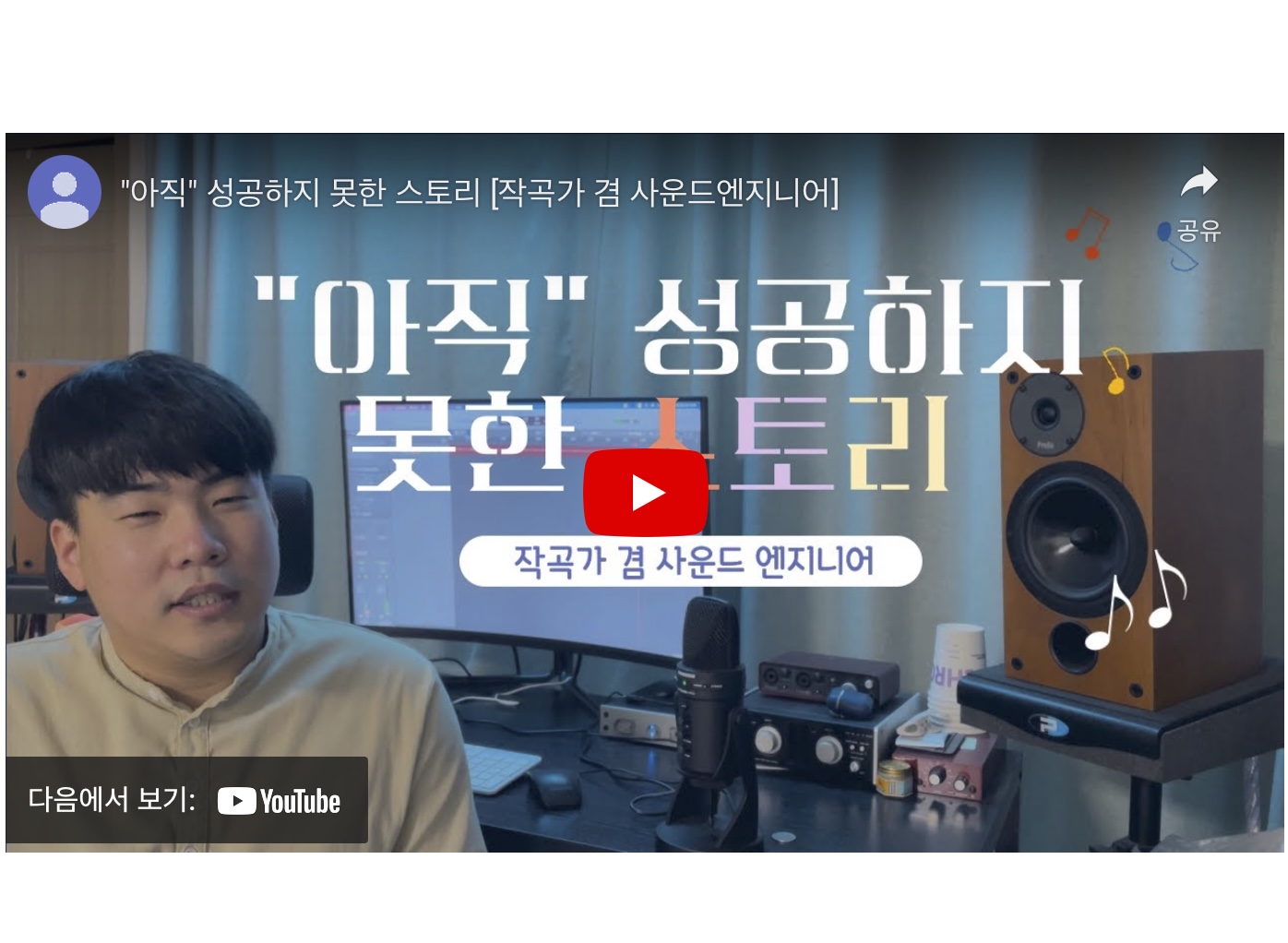 안녕하세요. 쿵치타티비에 쿵치타입니다. 오늘은 제목과 같이 성공하지 못한 작곡가 겸 엔지니어 인 쿵치타 저의 대한 얘기를 좀 해보려고 합니다. 이 얘기를 하려는 이유는 유튜브를 제작해 보려고 영상도 찍어보고 콘텐츠 기획도 해보고 하는 와중에 모든 콘텐츠들을 제가 프로처럼 보여야겠다는 심정이 강해서 그 마음을 좀 내려놓고자 저를 솔직하게 성공하지 못한 작곡가 겸 엔지니어라고 표현하고 나의 사실을 영상으로 찍어야겠다는 생각을 하고 이렇게 콘텐츠를 찍게 되었습니다.