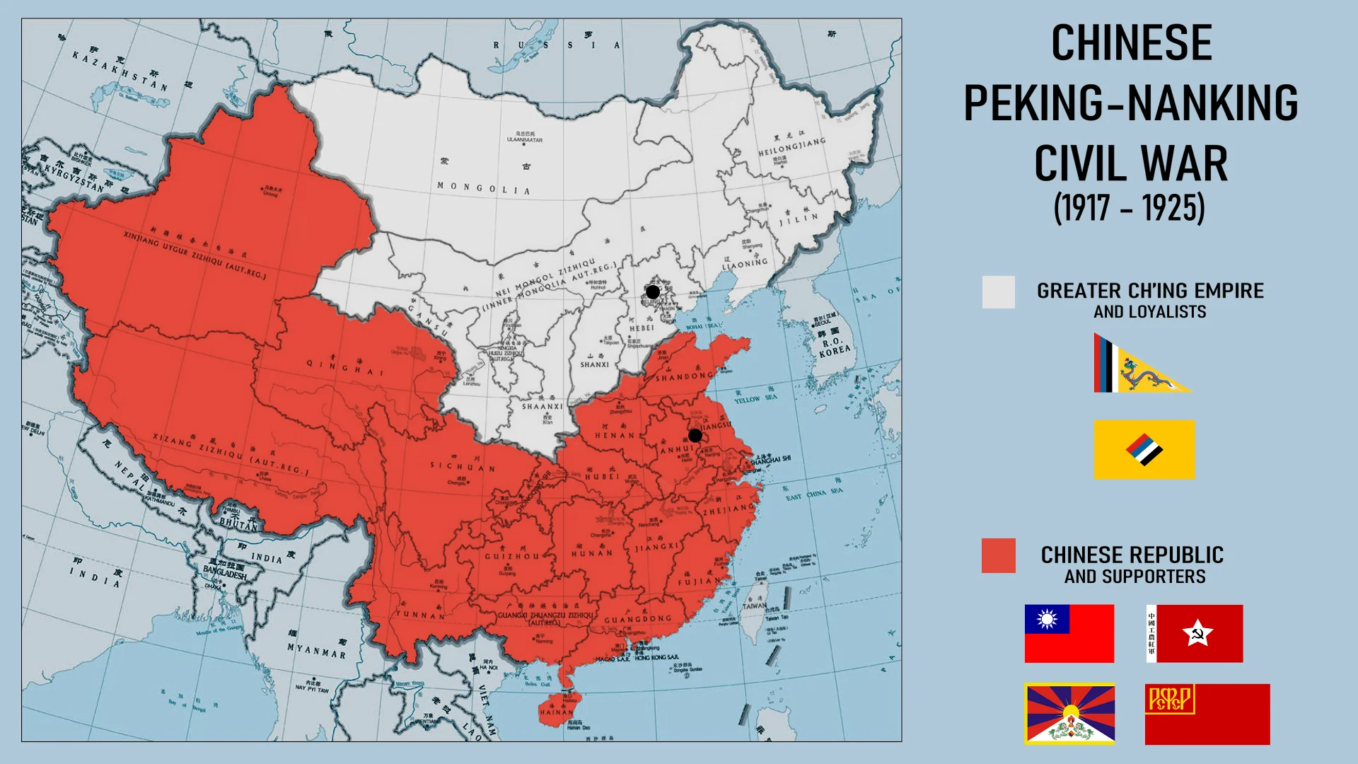 1917년 5월 대총통 리위안훙과 국무총리 단치서 사이에 다툼이 일어나고 7월, 장훈은 3천명의 병사를 이끌고 청나라 부활을 꾀했습니다. 그러나 토벌되고 국회 해산을 거쳐, 직예파 풍국장을 대총통으로 하고 안후이파 단치서를 국무총리로 하는 체제가 성립합니다.