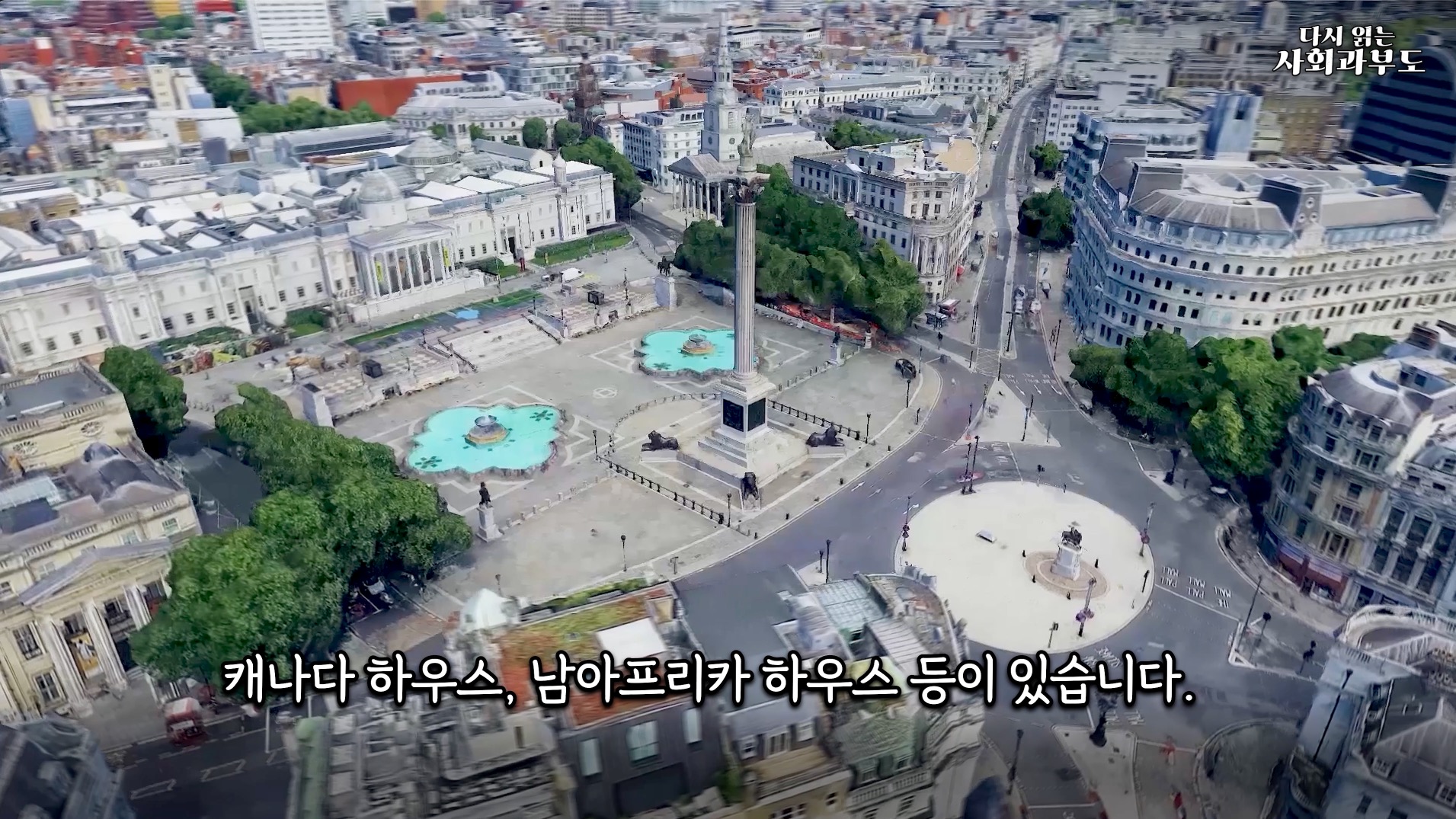 트라팔가 광장은 원래 King's Mews가 있었습니다. 조지 4세가 버킹엄 궁전으로 뮤를 옮기며, 광장은 1844년 대중에 문을 엽니다. 중앙에 있는 52m의 넬슨 기둥은 네 개의 사자 조각상이 지키고 있으며 광장을 주변에는 내셔널 갤러리, 세인트 마틴 인 더 필즈, 캐나다 하우스, 남아프리카 하우스 등이 있습니다. 트라팔가 광장은 왕실이 소유하고 그레이터 런던 당국에 의해 관리되며, 웨스트민스터 시의회는 노스 테라스의 보행자 구역을 포함하여 광장 주변의 도로를 소유하고 있습니다.